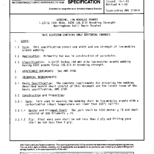 This specification covers one width and one strength of low-modulus aramid webbing.