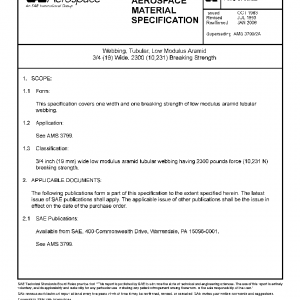 This specification covers one width and one breaking strength of low modulus aramid tubular webbing.
