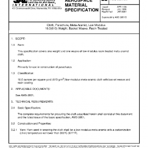 This specification covers one weight and one weave of low-modulus resin treated meta-aramid cloth.