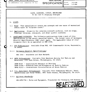 This specification covers one strength and one weave of mercerized cotton known as “airplane cloth.”