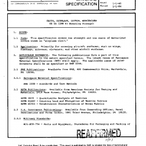This specification covers one strength and one weave of mercerized cotton known as “airplane cloth.”