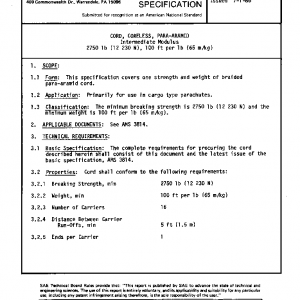 This specification covers one strength and weight of braided para-aramid cord.