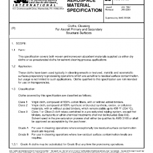 This specification covers both woven and nonwoven absorbent materials supplied as either dry cloths or as presaturated cloths for solvent cleaning process applications.