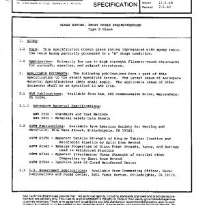 This specification covers glass roving impregnated with epoxy resin, the resin being partially processed to a “B” stage condition.