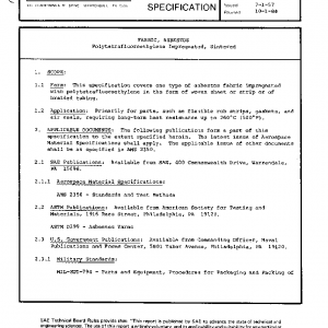 This specification covers one type of asbestos fabric impregnated with polytetrafluoroethylene in the form of woven sheet or strip or of braided tubing.