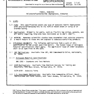 This specification covers one type of asbestos fabric impregnated with polytetrafluoroethylene in the form of woven sheet or strip or of braided tubing.
