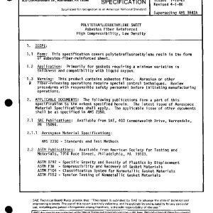 This specification covers polytetrafluoroethylene resin in the form of asbestos-fiber-reinforced sheet.