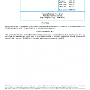 This specification covers polytetrafluoroethylene resin in the form of asbestos-fiber-reinforced sheet. Primarily for gaskets requiring a minimum variation in thickness and compatibility with liquid oxygen. This product contains asbestos fiber. Abrasion or other fiber-releasing operations require special control techniques. Review procedures with responsible safety personnel before initiating manufacturing operations.