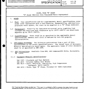 This specification and its supplementary detail specifications cover glass cloth impregnated with a heat-reactive, thermosetting, addition-cure polyimide resin system, the resin to be supplied in a “B” stage condition.