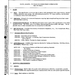 This specification covers one type of quartz cloth impregnated with a heat-reactive, thermo-setting, polyimide resin system, the resin being processed to a “B” stage condition, and furnished in continuous rolls of full width material.
