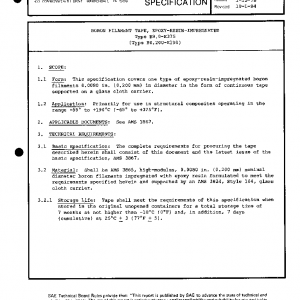 This specification covers one type of epoxy-resin-impregnated boron filaments 0.0080 in. (0.200 mm) in diameter in the form of continuous tape supported on a glass cloth carrier.