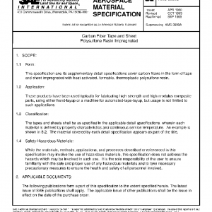 This specification and its supplementary detail specifications cover carbon fibers in the form of tape and sheet impregnated with heat-activated, formable, thermoplastic polysulfone resin.