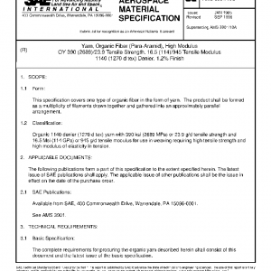 This specification covers one type of organic fiber in the form of yarn. The product shall be formed as a multiplicity of filaments drawn together and gathered into an approximately parallel arrangement.