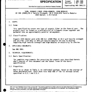 This specification covers one type of organic fiber in the form of yarn. The product shall be formed as a multiplicity of filaments drawn together and gathered into an approximately parallel arrangement.