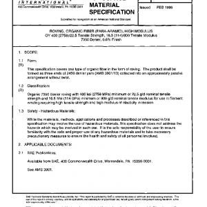This specification covers one type of organic fiber in the form of roving. The product shall be formed as three ends of 2450 denier yarn (AMS 3901/13) collected into an approximately parallel arrangement without twist.