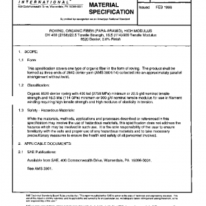 This specification covers one type of organic fiber in the form of roving. The product shall be formed as three ends of 2840 denier yarn (AMS 3901/14) collected into an approximately parallel arrangement without twist.