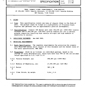 This specification covers one type of organic fiber in the form of yarn. The product shall be formed as a multiplicity of filaments drawn together and gathered into an approximately parallel arrangement.