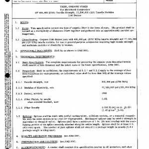 This specification covers one type of organic fiber in the form of yarn. The product shall be formed as a multiplicity of filaments drawn together and gathered into an approximately parallel arrangement.