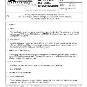 This specification covers one type of organic fiber in the form of roving. The product shall be formed as five ends of 1420 denier (1580 d tex) yarn (AMS 3901/4) collected into an approximately parallel arrangement without twist.