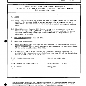 This specification covers one type of organic fiber in the form of roving. The product shall be formed as four ends of 1140 denier yarn (AMS 3901/3) collected into an approximately parallel arrangement without twist.