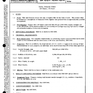 This specification covers one type of organic fiber in the form of yarn. The product shall be formed as a multiplicity of filaments drawn together and gathered into an approximately parallel arrangement.