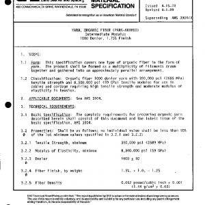 This specification covers one type of organic fiber in the form of yarn. The product shall be formed as a multiplicity of filaments drawn together and gathered into an approximately parallel arrangement.