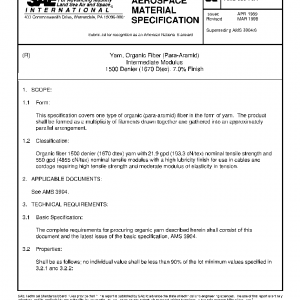 This specification covers one type of organic (para-aramid) fiber in the form of yarn. The product shall be formed as a multiplicity of filaments drawn together and gathered into an approximately parallel arrangement.