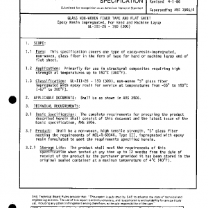 This specification covers one type of epoxy-resin-impregnated, non-woven, glass fiber in the form of tape for hand or machine layup and of flat sheet.