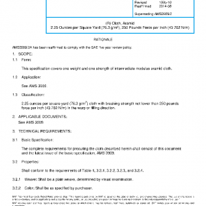 This specification covers one weight and one strength of intermediate modulus aramid cloth.