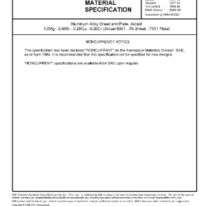 Aluminum Alloy Sheet and Plate, Alclad 1.0Mg – 0.60Si – 0.28Cu – 0.20Cr (Alclad 6061; -T6 Sheet, -T651 Plate)(NONCURRENT Apr 1984)