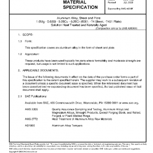 Aluminum Alloy, Sheet and Plate 1.0Mg – 0.60Si – 0.28Cu – 0.20Cr (6061; -T4 Sheet, -T451 Plate) Solution Heat Treated and Naturally Aged