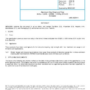 Aluminum Alloy Sheet and Plate 4.4Cu – 0.85Si – 0.80Mn – 0.50Mg (2014-O) Annealed(NONCURRENT Aug 2006)