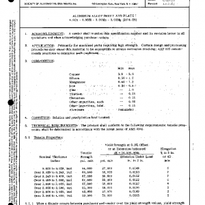ALUMINUM ALLOY SHEET AND PLATE 4.5Cu – 0.85Si – 0.80Mn – 0.50Mg (2014-T6)