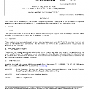 This specification covers an aluminum alloy in the form of sheet and plate supplied in the annealed (O) condition. When specified, product shall be supplied in the “as fabricated” (F) temper.