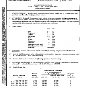 ALUMINUM ALLOY PLATE 5.6Zn – 2.5Mg – 1.6Cu – 0.30Cr (7075-T651) Stress-Relief Stretched