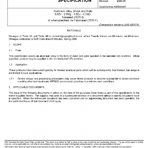 Aluminum Alloy, Sheet and Plate 5.6Zn – 2.5Mg – 1.6Cu – 0.23Cr Annealed (7075-0) or when specified, As Fabricated (7075-F)