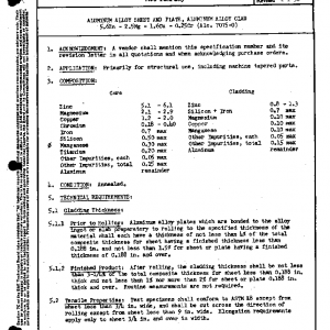 ALUMINUM ALLOY SHEET AND PLATE, ALUMINUM ALLOY CLAD 5.6Zn – 2.5Mg – 1.6Cu – 0.25Cr (Alc. 7075-0)