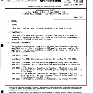 ALUMINUM ALLOY PLATE 6.2Zn – 2.3Cu – 2.2Mg – 0.12Zr (7050-T7451) Solution Heat Treated, Stress Relieved, and Overaged