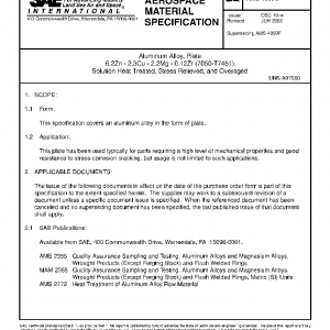 Aluminum Alloy, Plate 6.2Zn – 2.3Cu – 2.2Mg – 0.12Zr (7050-T7451) Solution Heat Treated, Stress Relieved, and Overaged