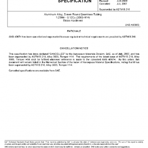 Aluminum Alloy, Drawn Round Seamless Tubing, 1.25Mn – 0.12Cu (3003-H14), Strain Hardened(Cancelled Jul 2007)