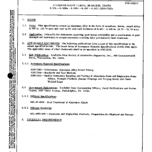 This specification covers an aluminum alloy in the form of seamless, drawn, round tubing 0.500 in. (12.70 mm) and over in OD with wall thickness of 0.029 – 0.500 in. (0.74 – 12.70 mm).