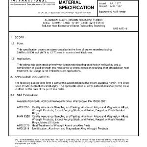 This specification covers an aluminum alloy in the form of drawn seamless tubing 0.029 to 0.500 inch (0.74 to 12.70 mm) in nominal wall thickness.