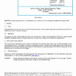 This specification covers an aluminum alloy in the form of drawn, round seamless tubing with wall thicknesses of 0.010 to 0.450 inch (0.25 to 11.43 mm), inclusive.