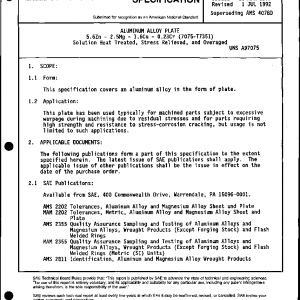 ALUMINUM ALLOY PLATE 5.6Zn – 2.5Mg – 1.6Cu – 0.23Cr (7075-T7351) Solution Heat Treated, Stress Relieved, and Overaged