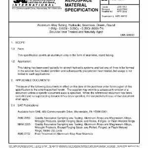 Aluminum Alloy Tubing, Hydraulic, Seamless, Drawn, Round 1.0Mg – 0.60Si – 0.28Cu – 0.20Cr (6061-T4) Solution Heat Treated and Naturally Aged
