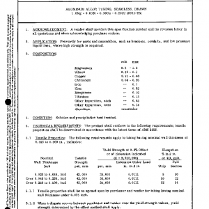 ALUMINUM ALLOY TUBING, SEAMLESS, DRAWN 1.0Mg – 0.60Si – 0.30Cu – 0.20Cr (6061-T6)