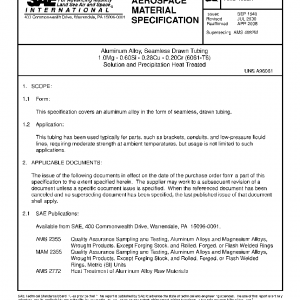 Aluminum Alloy, Seamless Drawn Tubing 1.0Mg – 0.60Si – 0.28Cu – 0.20Cr (6061-T6) Solution and Precipitation Heat Treated