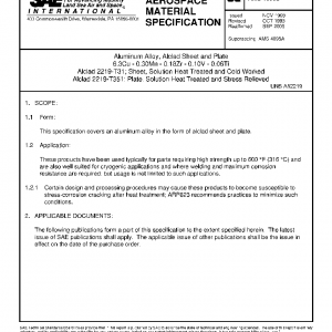 Aluminum Alloy, Alclad Sheet and Plate 6.3Cu – 0.30Mn – 0.18Zr – 0.10V – 0.06Ti Alclad 2219-T31; Sheet, Solution Heat Treated and Cold Worked Alclad 2219-T351; Plate, Solution Heat Treated and Stress Relieved