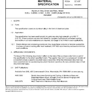 Aluminum Alloy Sheet and Plate, Alclad 6.3Cu – 0.30Mn- 0.18Zr – 0.10V – 0.06Ti (Alclad 2219-O) Annealed