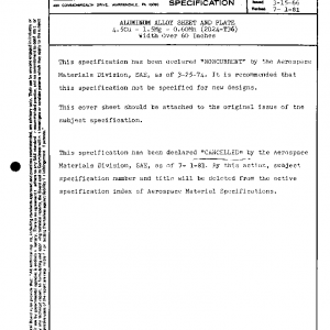Aluminum Alloy, Sheet and Plate 4.5 Cu – 1.5 Mg – 0.60 Mn (2024-T36) Width Over 60 In.(Cancelled Dec 2002)